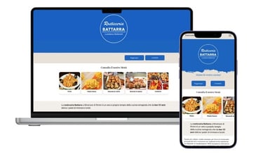 Sito web elegante con menù dinamico costruito su una pagina per una consultazione veloce e rapida del menù.
