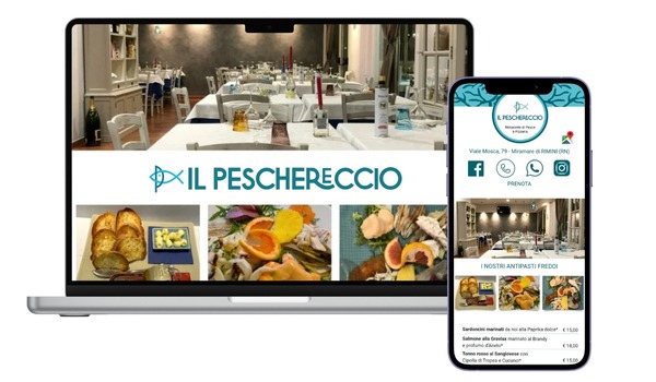 Sito web elegante con menù dinamico costruito su più pagine per un ristorante con specialità pesce.